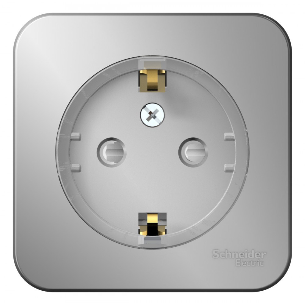 Розетка Systeme Electric (ранее Schneider Electric) BLANCA (алюминий, открытой установки) одноместная, с заземлением, шторками и изолирующей пластиной предназначена для сетей до 250В, на ток до 16А. Шторки открываются только при одновременном равномерном давлении в оба отверстия и препятствуют проникновению посторонних предметов. Они обеспечат дополнительную безопасность в доме, где есть дети.