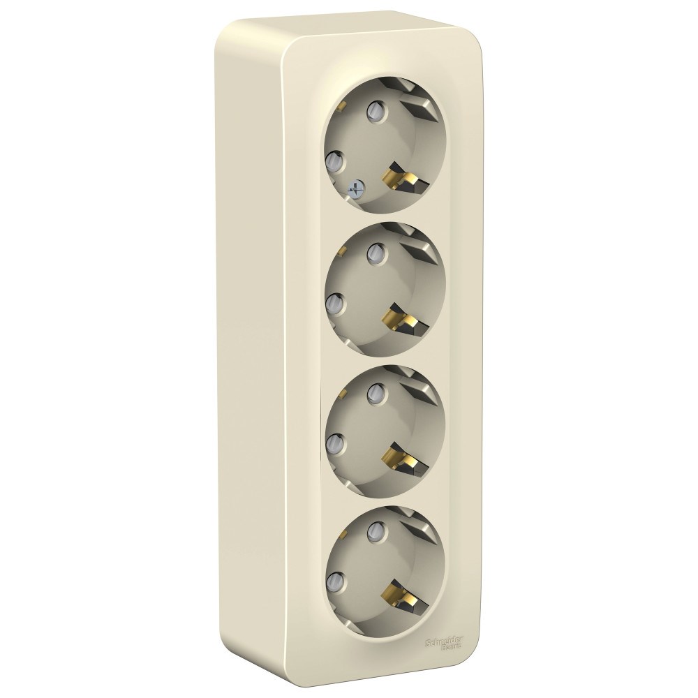 Розетка Systeme Electric (ранее Schneider Electric) BLANCA (молочный, открытой установки) четырехместная, с заземлением, шторками и изолирующей пластиной предназначена для сетей до 250В, на ток до 16А. Четырехместная розетка позволяет подключить четыре устройства в одном месте. Шторки и заземление обеспечивают дополнительную безопасность при косвенном прикосновении.