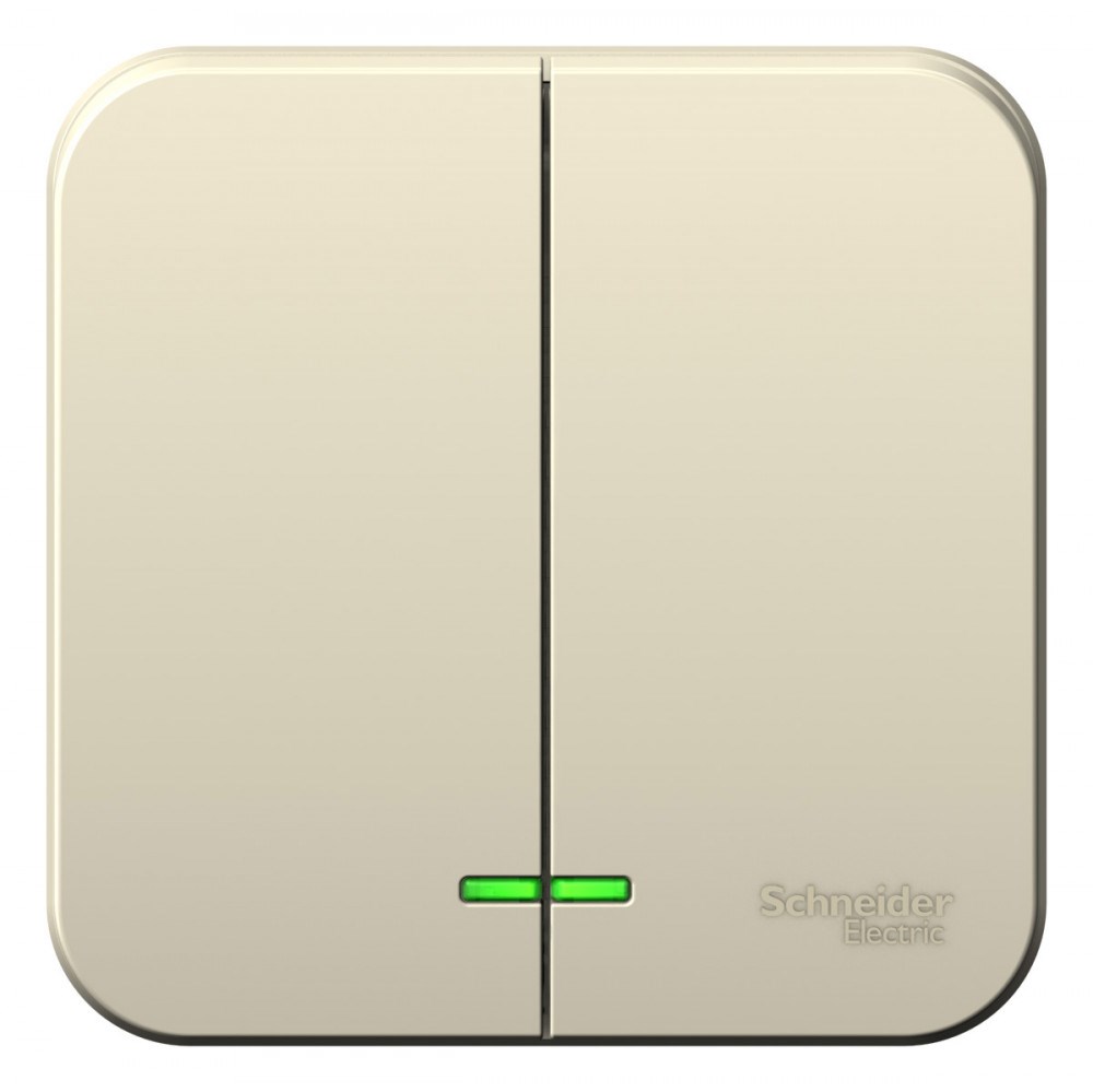 Выключатель Systeme Electric (ранее Schneider Electric) BLANCA (молочный, открытой установки) двухклавишный с изолирующей пластиной предназначен для сетей до 250В, на ток до 6А. Подсветка делает его легко находимым в отсутствие освещения. Двухклавишный выключатель позволяет управлять двумя источниками света из одной точки.