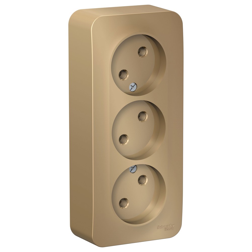 Розетка Systeme Electric (ранее Schneider Electric) BLANCA (титан, открытой установки) трехместная, без шторок и заземления, с изолирующей пластиной предназначена для сетей до 250В, на ток до 16А. Трехместная розетка позволяет подключить три устройства в одном месте. Она изготовлена из ABS-пластика, проста в установке и удобна в применении.