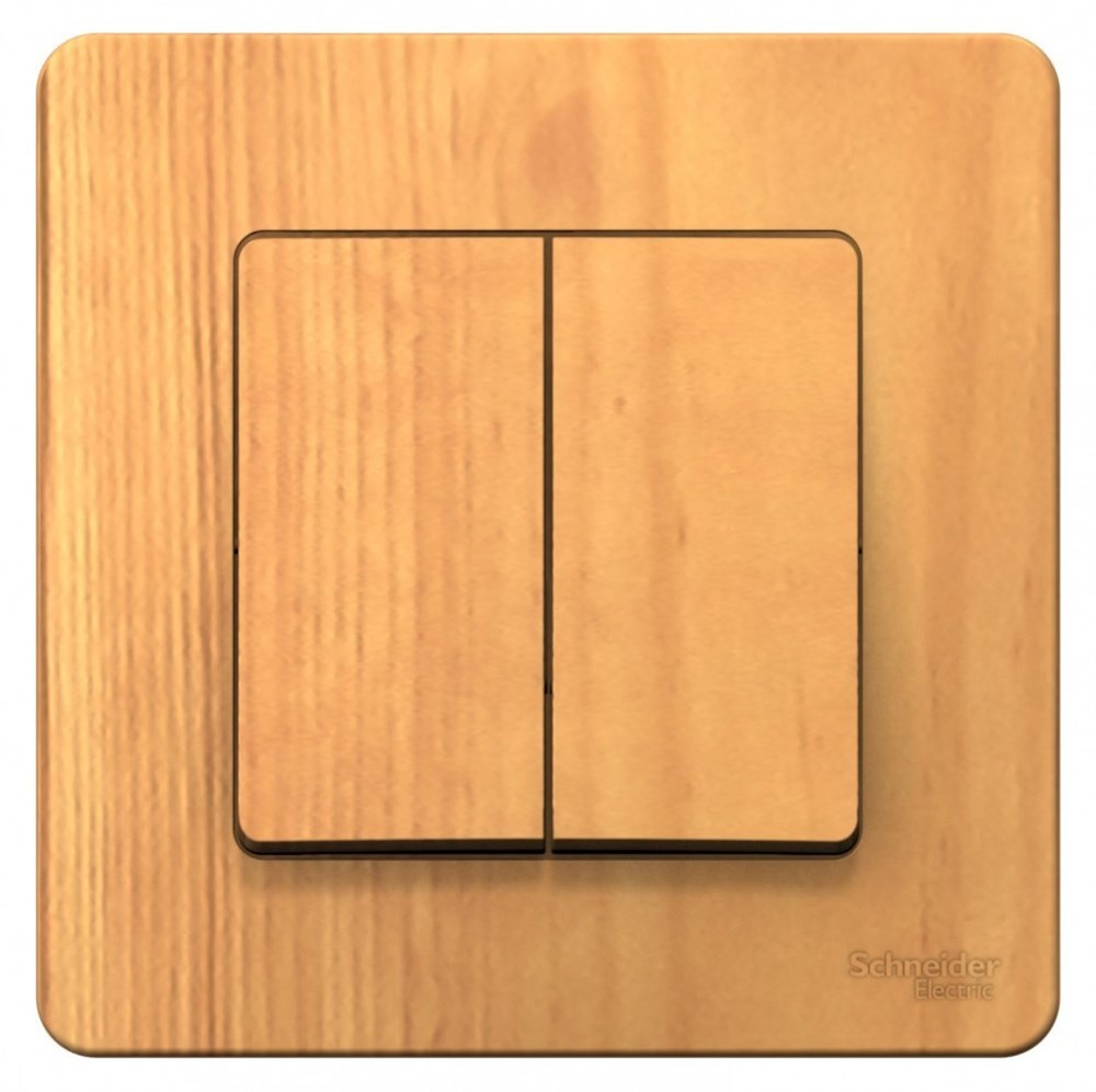 Переключатель Systeme Electric (ранее Schneider Electric) BLANCA (ясень, скрытой установки) двухклавишный предназначен для сетей до 250В, на ток до 10А. Подсветка делает его легко находимым в отсутствие освещения. Переключатель позволяет управлять одним источником света из двух точек. Изделия цвета Ясень обладают уникальным рисунком, напоминающим древесный сруб.