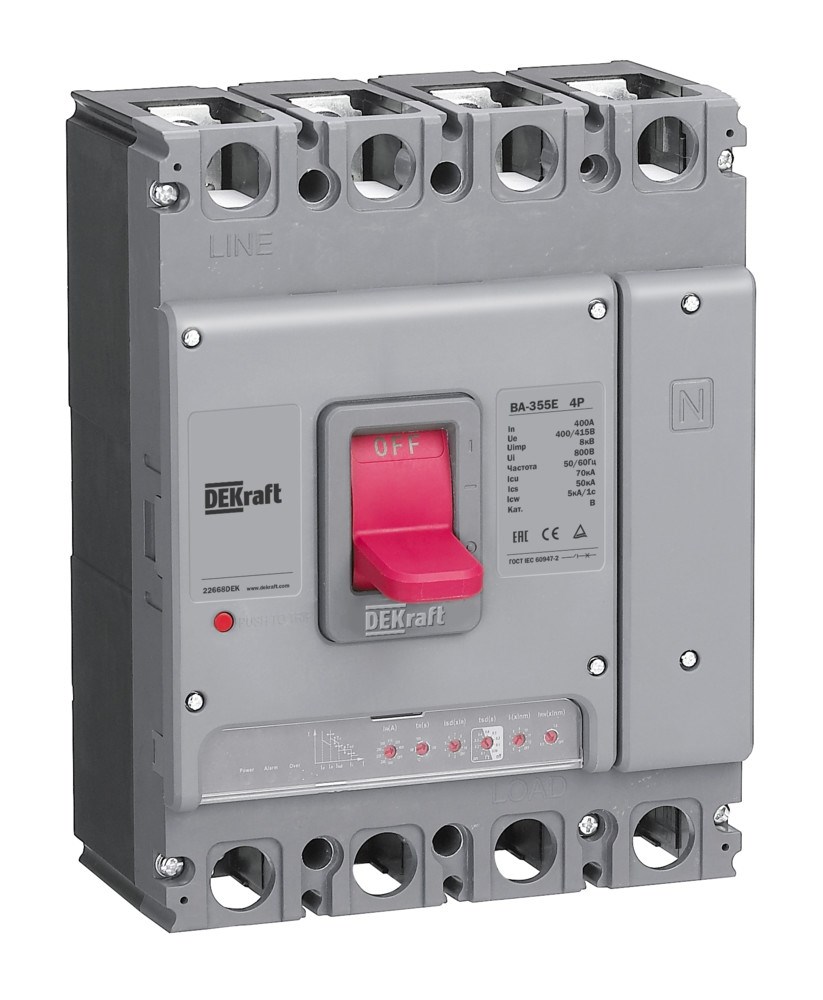 Dekraft Силовой автоматический выключатель с электронным расцепителем 4P 400А 70кА ВА-355E 22668DEK