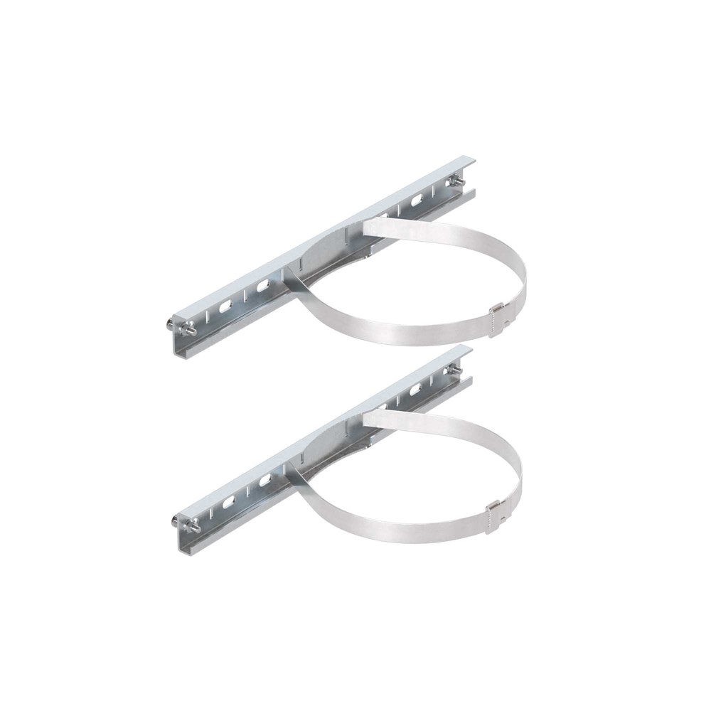 Комплект для крепления корпусов ST, STX, STE, STEX, STH, SDE, RAM box шириной 300 мм на опору. Крепежные профили изготавливаются из оцинкованной стали толщиной 2 мм, стяжные хомуты – из нержавеющей стали AISI 304. Максимальная статическая нагрузка на 2 профиля – 300 кг, подходят для круглых опор диаметром 40...195 мм или квадратных опор со стороной 60...165 мм. В комплект поставки входят: 2 профиля, 2 стяжных хомута, 2 замка для фиксации хомутов.