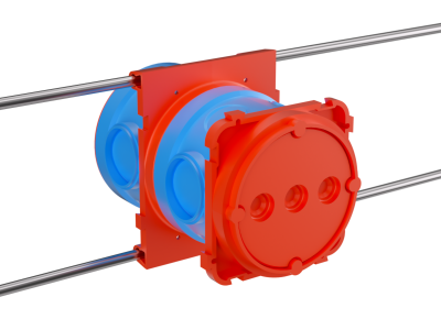 Универсальная потолочная коробка для заливки в бетон применяется, чтобы сделать разводку кабеля и закрепить осветительный прибор (при монолитном бетоностроении). Аксессуар монтируется к арматурному каркасу с помощью прутка. Параметры коробки: 90х71х110 мм.