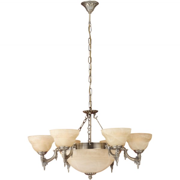 Люстра из коллекции MARBELLA - это великолепный осветительный прибор, который станет эффектным украшением гостиной. Выполненная из литого металла бронзового цвета, с плафонами из алебастрового стекла в прекрасном цвете шампань, данная модель точно придется по вкусу любителям классического стиля в интерьере. Бронзовый цвет, имитирующий состаренное покрытие, смотрится благородно, а фигурные элементы придают люстре изысканности, привлекательности и удачно завершают композицию. Алебастровое стекло плафона полностью закрывает источник освещения, благодаря чему световые лучи не раздражают глаза. Оснащена цоколем Е14 и рассчитана на 9 источников освещения, которые приобретаются отдельно. Габариты: диаметр – 740 мм, высота – 1100 мм. Наличие 1 класса защиты свидетельствует о том, что прибор имеет основную изоляцию от поражения электрическим током.