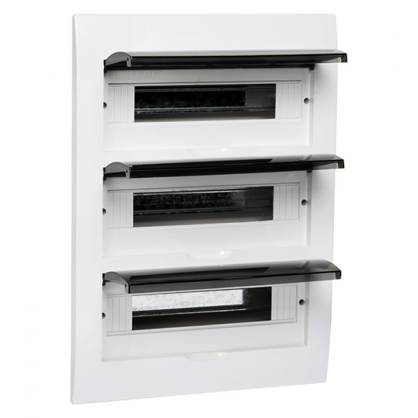 Щиты распределительные пластиковые ЩРн-П, ЩРв-П EKF PROxima предназначены для установки модульной аппаратуры: автоматических выключателей, УЗО, таймеров, устройств управления и т.д. Используются для электромонтажа в жилых, административных, торговых помещениях. Вертикальное открывание дверцы позволяет устанавливать бокс независимо от положения соседних стен. Электрощиты изготовлены из прочного ABS-пластика.
