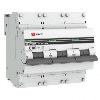 EKF PROxima ВА 47-100M Автоматический выключатель (С) 3P 100А 10kA с электромагнитным расцепителем mcb47100m-3-100C-pro