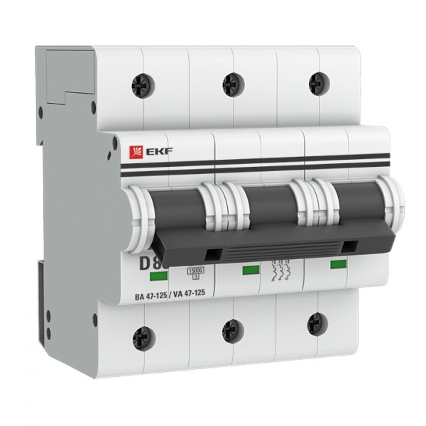 EKF PROxima ВА 47-125 Автоматический выключатель (D) 3P 80А 15кА mcb47125-3-80D