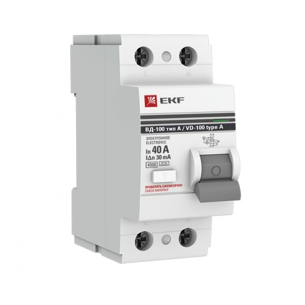 EKF PROxima ВД-100 УЗО 2P 40А/30мА (A) электромеханическое elcb-2-40-30-e-a-pro