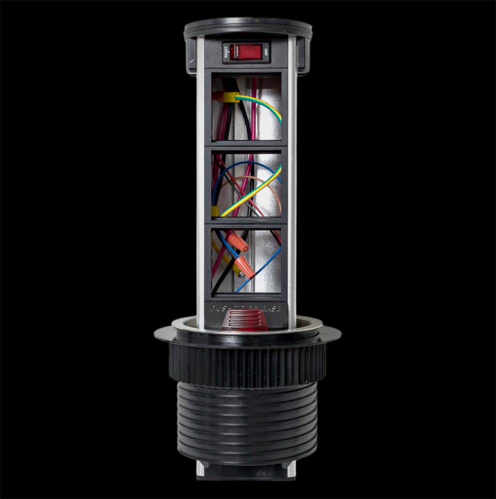 Встраиваемая мини-колонна с беспроводной зарядкой 15 Вт, 6 модулей C-Line. Встраиваемая мини-колонна с беспроводной зарядкой – это изделие цилиндрической формы с ручным выдвижным механизмом, предназначенное для установки ЭУИ стандарта 45х45. Верхняя крышка мини-колонны оснащена беспроводной зарядкой для электронных девайсов. Беспроводное зарядное устройство считывает данные с контроллера питания подключенного девайса и подбирает оптимальные и безопасные выходные параметры тока и напряжения. Изделие поставляется в комплекте с сетевым кабелем питания (2 метра). В нижней крышке колонны предусмотрены 2 дополнительных кабельных ввода. Монтаж производится в предварительно подготовленное отверстие диаметром Ø95-100 мм. Допустимая толщина поверхности стола 10-45 мм.