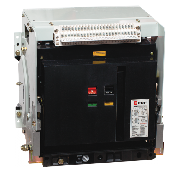 Автоматические выключатели серии BН-45 EKF являются воздушными выключателями с механизмом свободного расцепления и оперирования контактами посредством механизма с пружинным накопителем энергии. Выключатель выполнен в виде механической конструкции, смонтированной на жесткой раме. Основные органы управления и индикации выведены на лицевую панель.