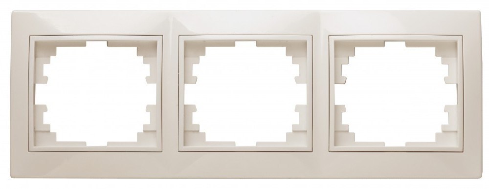 Рамка выполнена из термопласта. Устанавливается на 3 устройства серии Intro Plano, смонтированные в два горизонтально установленных подрозетника.