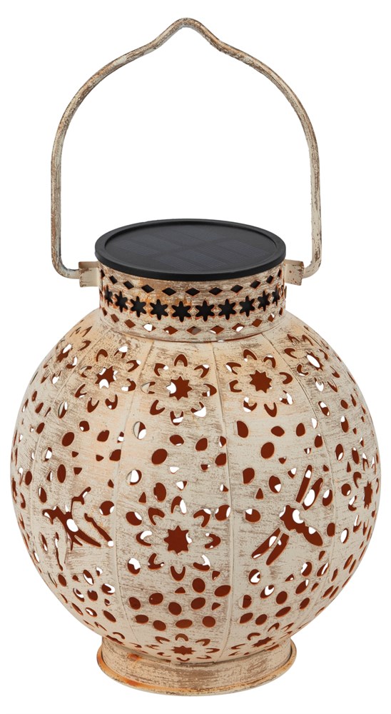 ЭРА ERASF22-59 (арт. Б0057658) - садовый светильник-амфора в турецком стиле. Встроенная солнечная батарея накапливает энергию в течение светового дня, даже в пасмурную погоду. Впечатляющий световой эффект в виде 3D-точек разного размера достигается оригинальной перфорацией плафона в форме шара. Высота уличного садового светильника - 15 см. Имеется металлический подвес-ручка для удобного переноса и быстрого размещения в любой части сада. Светильник-фонарик на солнейчной батерее окрашен стойким способом в бело-золотые оттенки с эффектом состаривания. Это придаёт светильнику особую стилистику под восточную драгоценность. Садовые светильники ЭРА "Амфора" светят уютным тёплым светом.