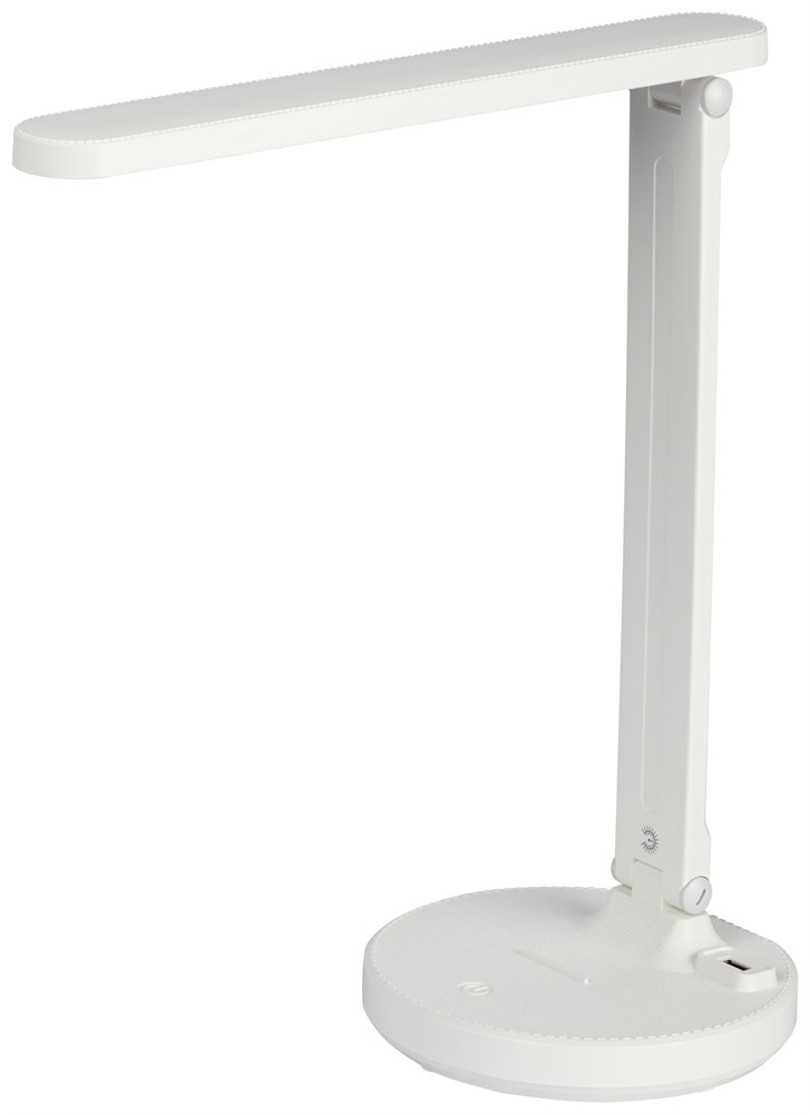 Настольный светильник ЭРА NLED-511-6W-W со светодиодами (LED) в качестве источников света в дзайне "под кожу". Встроенный литиевый аккумулятор для автономной работы. Подзарядка от USB. USB-кабель в комплекте. Удобная складная конструкция с сенсорным управлением, возможностью выбора цветовой температуры и плавным диммером для регулировки яркости. На обратной стороне основания расположен выключатель для отключения/блокировки сенсора от случайного включения. В светильник встроена функция power bank - есть USB-порт для подзарядки устройств на основании (именно как power bank, автономно, от сети не подзаряжает). Направление света регулируется наклоном стойки и поворотом панели со светодиодами относительно стойки для максимального комфорта.