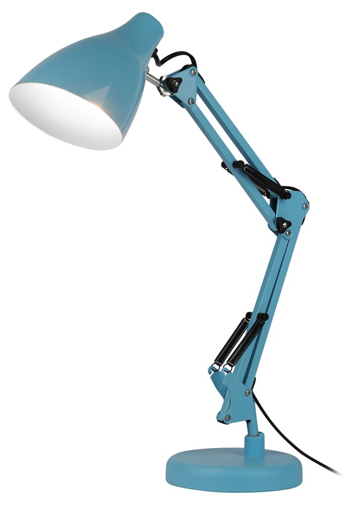 Настольный светильник ЭРА N-123-E27-40W-LBU трендового дизайна с классической конструкцией может использоваться с разными источниками света - лампой накаливания, компактной люминесцентной лампой (КЛЛ) или светодиодной (LED) лампой. Выключатель на проводе. Устойчивое основание. Высота плафона регулируется двухсекционной сгибающейся стойкой, направление света - поворотом и наклоном плафона в любом направлении.