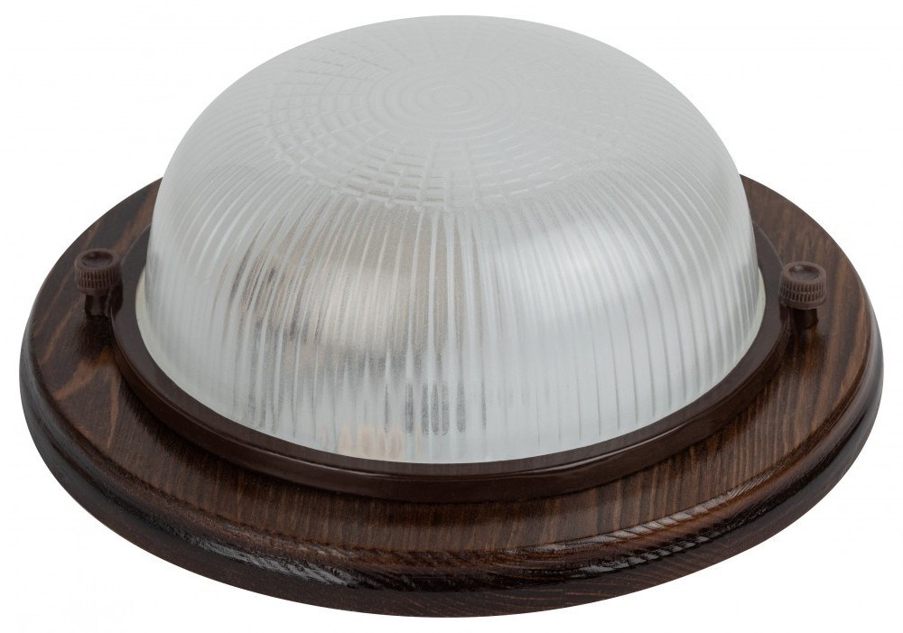 Светильник серии "Кантри", в дизайне которой применено натуральное дерево. Некоторые модели дополнительно защищены деревянной решеткой. Диапазон рабочих температур: от +1°С до +130°С. Материал рассеивателя: селикатное стекло. Материал корпуса: сталь, дерево оттенка орех. Источник света: лампа с цоколем Е27. Габариты: 220х220х84 мм. Степень защиты от окружающей среды: IP54. Данные светильники предназначены для освещения административно-бытовых, производственных помещений и мест общественного пользования.