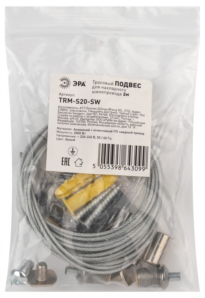 ЭРА Подвес для шинопровода TRM-S20-SW тросовый для накладного магнитного NOVA TRM-S20 Б0054789