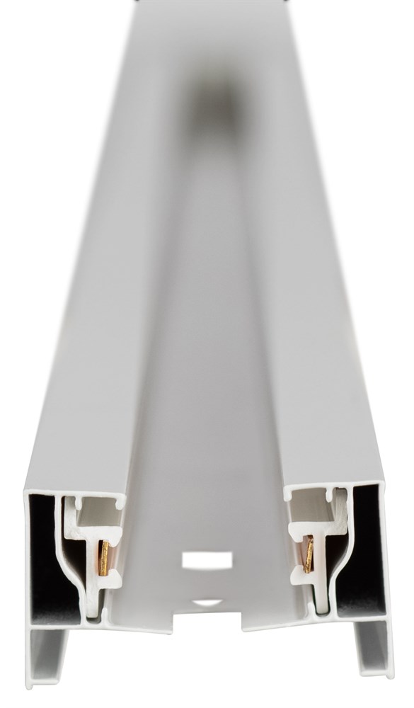 Однофазный трековый шинопровод ЭРА с плоскими токоведущими жилами. В комплект поставки входит ввод питания и торцевая заглушка. Новый силуэт профиля обеспечивает высокую торсионную жесткость изделия. Токоведущие жилы выполненые из 100% меди, что гарантирует низкие потери проводника и возможность установить светильники суммарной мощность до 3 кВ.