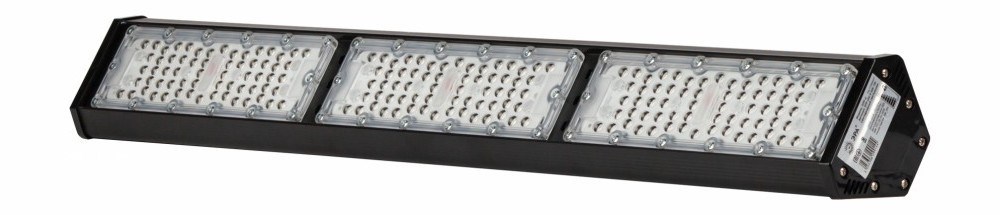 Светильник светодиодный высокомощный. Тип светильника: Замена ГСП, ЖСП, СДГ. Область применения: Предназначен для общего освещения складских и производственных помещений, в т.ч. открытых пандусов, торговых и выставочных павильонов, гипермаркетов, спортивных сооружений и т.п.. Преимущества: КСС "Г" - оптимальна для освещения складов; Коэффициент пульсации <5% - допустимо к применению в заводских цехах; 105Лм/Вт соответствует требованиям Постановления Правительства №1356. Потребляемая мощность, Вт: 150. Световой поток, Лм: 15 750. Светоодача, Лм/Вт: 105. Цветовая температура, К: 5000K. Индекс цветопередачи, Ra: Ra>80. Степень защиты от воздействия окружающей среды, IP: IP54. Климатическое исполнение: У2. Диапазон рабочих температур: (-45+40). Тип кривой силы света: Г (140/55). Коэффициент мощности, PF: >0,95. Коэффициент пульсации светового потока, %: <5%. Материал рассеивателя: поликарбонат. Материал корпуса: Алюминий. Цвет корпуса: черный. Габариты, мм: 747х103,5х73,5. Питающее напряжение, В: 170-265. Гарантия: 3 года.