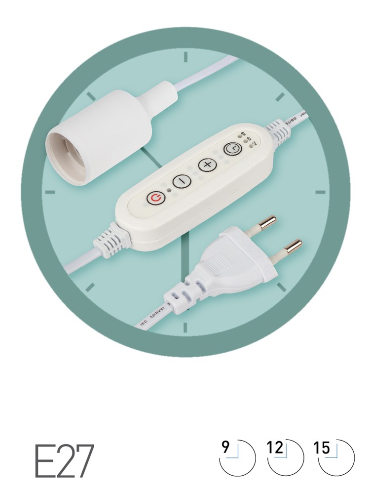 ЭРА Светильник для растений ЭРА FITO-Time Holder E27 с проводом и таймером для фитоламп с цоколем Е27 Б0059882
