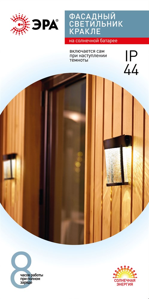 ЭРА Светильник уличный ERAFS012-15 на солнечной батарее настенный Кракле 10x10x18.5 см 1 LED Б0062402