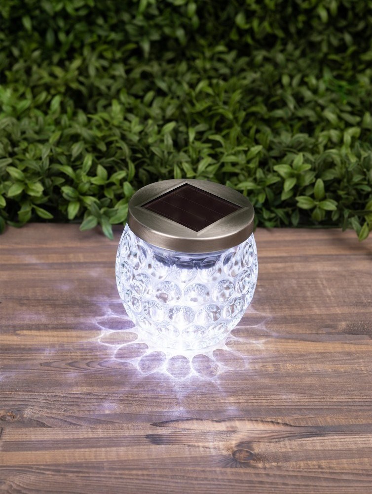 Садовый светильник Хрустальный шар имеет белое свечение, и прекрасно подойдет для освещения террасы, беседок, дорожек и клумб. Диаметр 10 см. Белое свечение светодиодов.