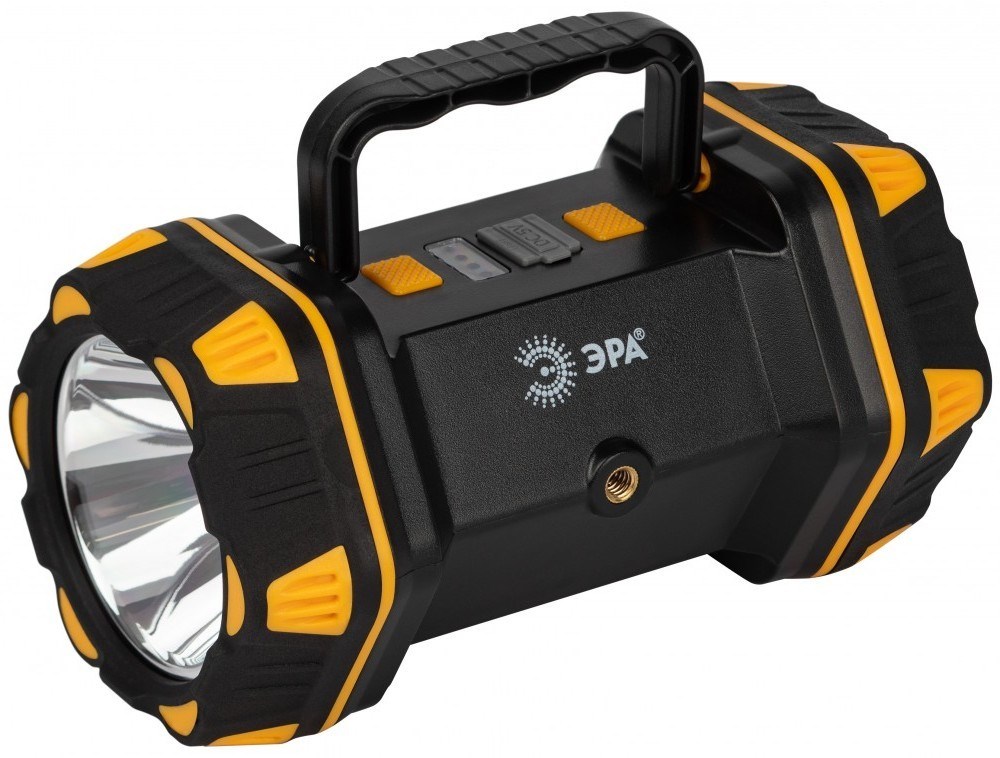 ЭРА «Практик» PA-808 – многофункциональный прожекторный фонарь с ёмким литиевым аккумулятором. Имеет множество режимов свечения: основной свет (100% яркости и 50% яркости), боковой свет (100% яркости и 50% яркости), свет с обратной стороны (100% яркости, 50% яркости, красный свет, красный мигающий). Всего – 65 светодиодов для создания яркой практичной подсветки. Этот современный фонарь имеет различные крепления и поможет организовать качественное портативное освещение в любой ситуации. Предусмотрено гнездо под штатив. Ещё одно преимущество – возможность использовать фонарь ЭРА PA-808 в качестве пауэрбанка для оперативной подзарядки мобильных устройств. Сам фонарь удобно заряжается при помощи кабеля microUSB и непрерывно светит от одного полного заряда до 15 часов. Имеется индикатор заряда.