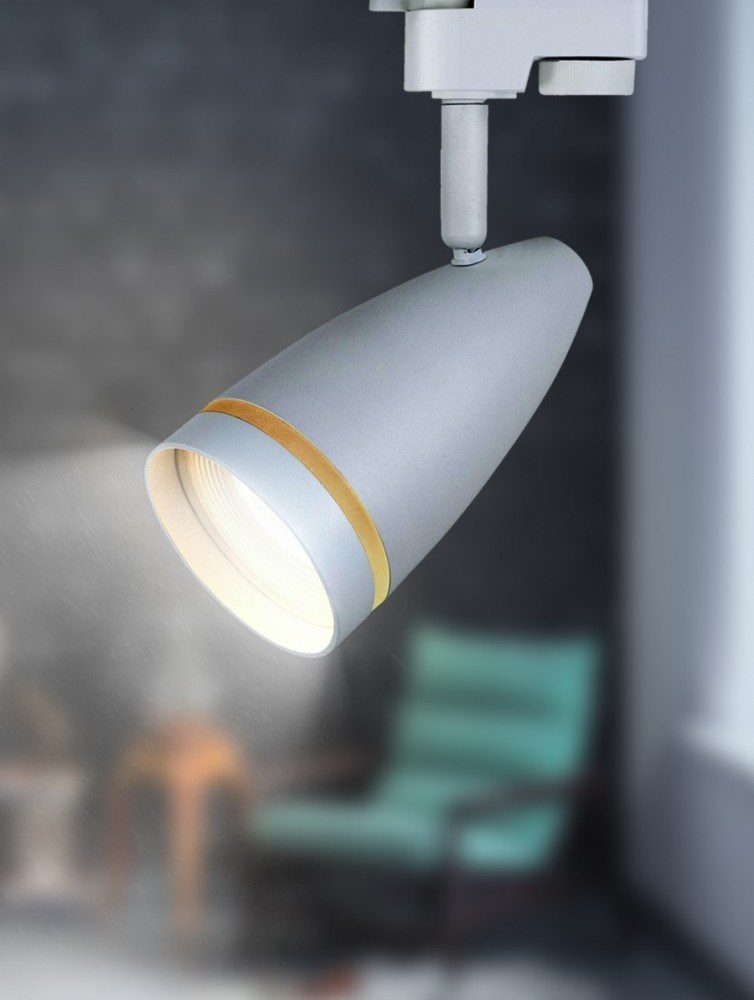 Однофазный трековый светильник под лампу с цоколем GU10. Светильник выполнен из алюминия и пластика. На передней части плафона, выполненного в виде конуса, расположено декоративное акриловое кольцо, которое наполняется светом и придает светильнику превосходный внешний вид.