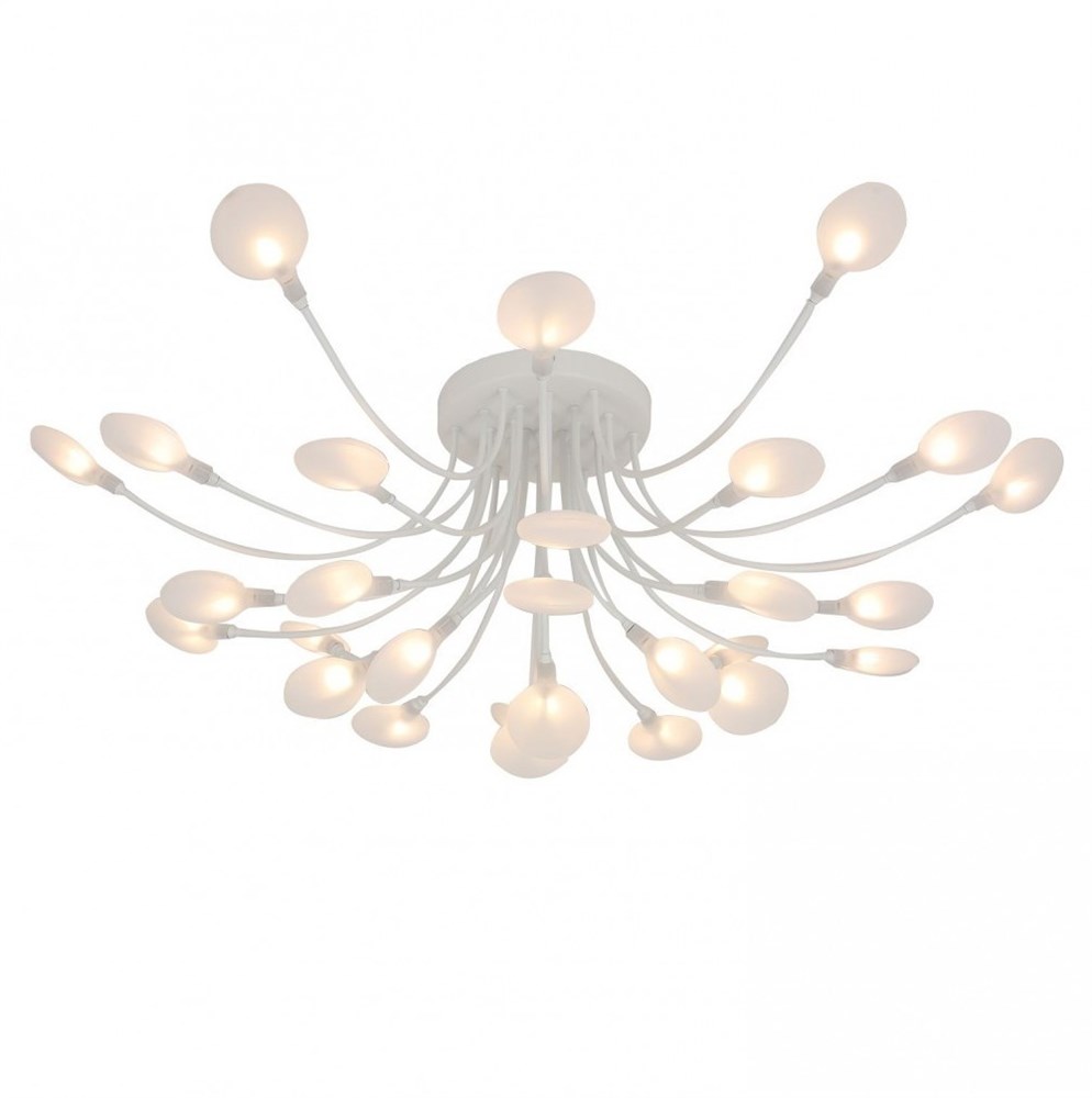 потолочная люстра, металлический каркас белого цвета, белые акриловые плафоны, лампы G4 можно менять
