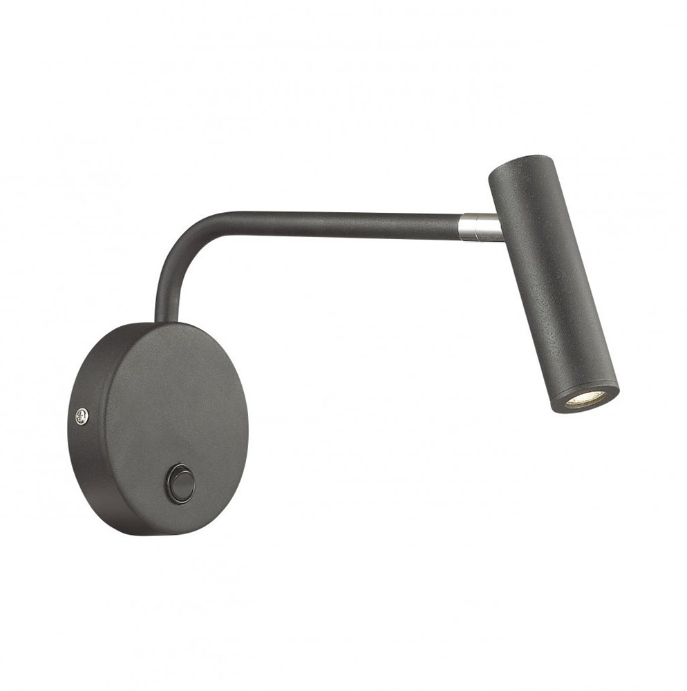 настенный светильник; Крепление-планка; Размер светильника-D120*W60*H100; Лампы-1*LED*3W, 3000K, included; Цвет, отделка-черный металл, элементы в хроме, с выключателем