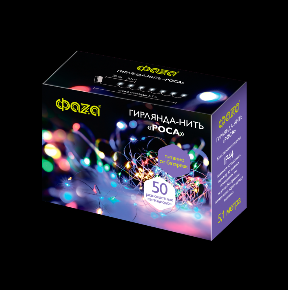 ФАZA Гирлянда DC-G03-50M, 50 мульт. microLED, 5.1 м., 8 реж., 3xAA .5047877