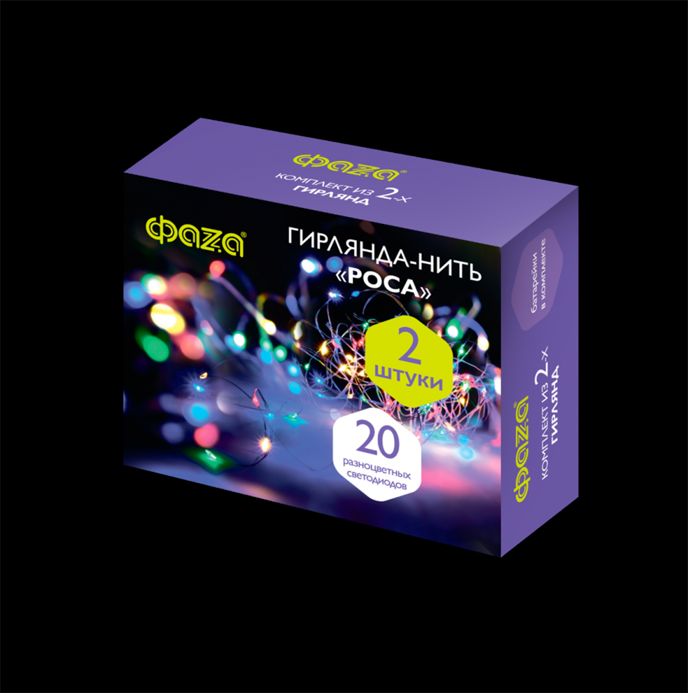 Гирлянда-роса с питанием от батареек. Элементы питания входят в комплект. В каждом комплекте – 2 гирлянды. Предназначена для декоративной подсветки помещений, праздничного украшения интерьера, мебели, костюмов, букетов и т. д. Гирлянда подходит для использования внутри помещения (степень пылевлагозащиты IP20). Кнопка включения и выключения находится на блоке питания. Материал корпуса блока питания – PVC-пластик, в гирлянде используется медный провод.