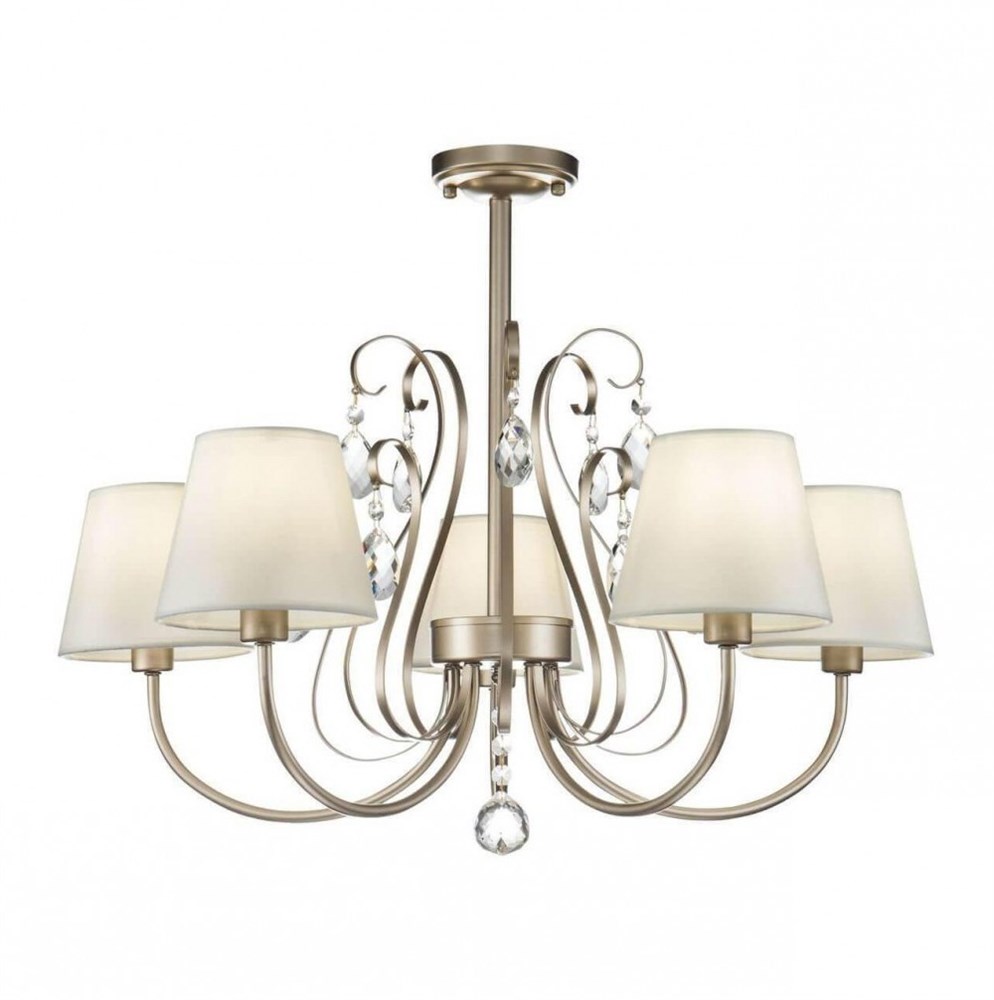 Серия Vanda выполнена в классическом стиле. Благодаря своему строгому и элегантному дизайну светильники могут дополнить интерьер гостиной, спальни и даже гардеробной комнаты. Металлическая арматура цвета матового золота, абажуры сделаны из белой ткани. Светильники украшены декоративными подвесками. Люстра FR2030CL-05G; Высота-470; Высота при подвесном креплении--; Диаметр-660; Ширина--; Глубина--; Цоколь-E14; Мощность-40W