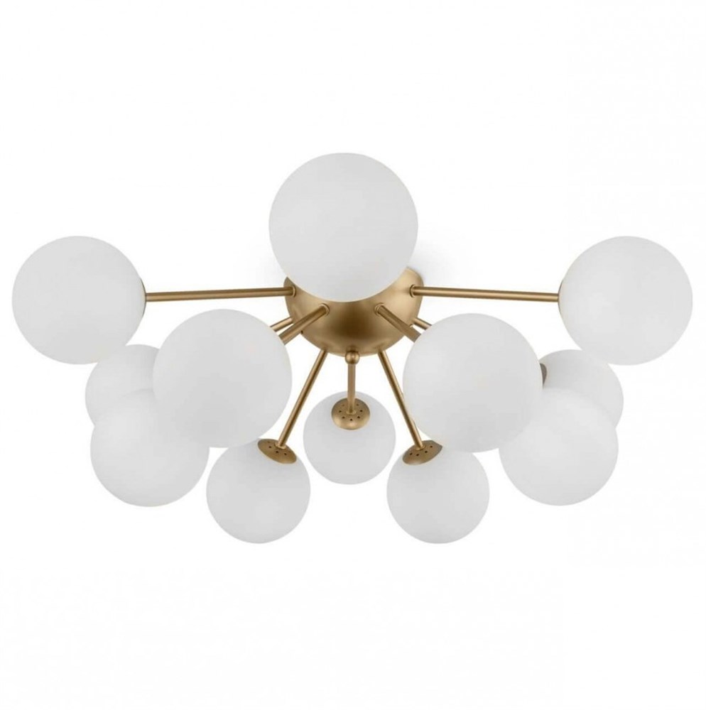 Оригинальная композиция, объединяющая стеклянные плафоны-сферы и металлическую арматуру цвета латуни, актуальна для освещения современных интерьеров Благодаря большому ассортименту серии и наличию в ней люстр различного диаметра и высоты, каждый сможет выбрать светильник необходимых размеров. Разнообразие конструктивных решений также не оставляет равнодушным: ассиметричные светильники и модели с дугообразными рожками-лучами займут достойное место в любой обстановке. Люстры на 12, 9 и 6 плафонов позволяют подобрать оптимальную яркость и мощность подсветки, исходя из размеров помещения.