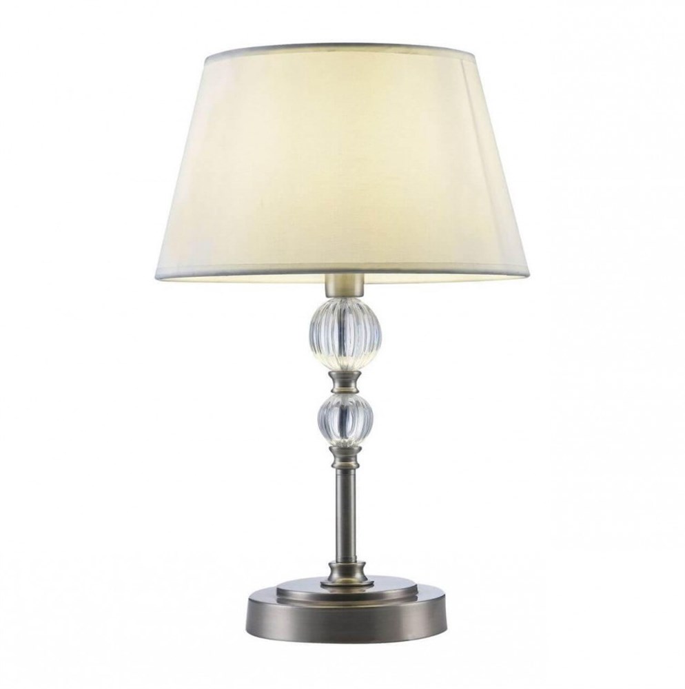 Серия светильников для интерьеров гостиных, спален и офисов в современном стиле. Арматура из метала цвета “никель” дополнена декоративными элементами из прозрачного акрила (шарики). Белые абажуры из текстиля на ПВХ. Настольная лампа FR5679TL-01N; Высота-420; Высота при подвесном креплении--; Диаметр-280; Ширина--; Глубина--; Цоколь-E14; Мощность-60W