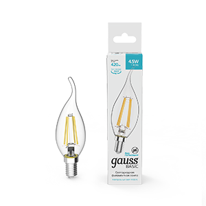 Gauss Лампа Basic Filament Свеча на ветру 4,5W 420lm 4100К Е14 LED 1041125