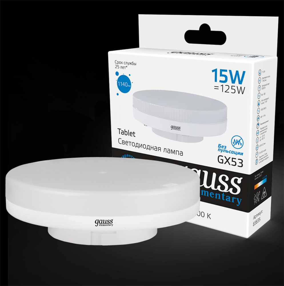 Gauss Лампа Elementary GX53 15W 1140lm 6500K LED 83835