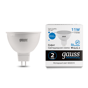 Gauss Лампа Elementary MR16 11W 850lm 6500K GU5.3 LED 13531