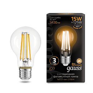 Gauss Лампа Filament А60 15W 1400lm 2700К Е27 LED 102902115