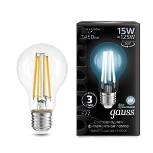 Gauss Лампа Filament А60 15W 1450lm 4100К Е27 LED 102902215