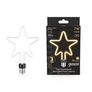 Gauss Лампа Filament Artline Star 7W 580lm 2700К Е27 milky LED 1006802104