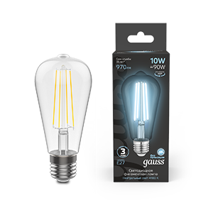 Gauss Лампа Filament ST64 10W 970lm 4100К Е27 LED 1/10/40 157802210
