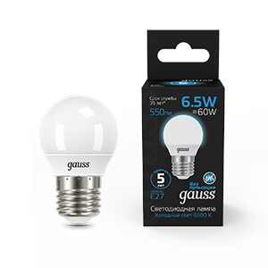 Gauss Лампа Шар 6.5W 550lm 6500K E27 LED 1/10/100 105102307