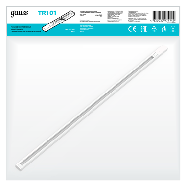 Gauss Шинопровод накладной 1м белый (с адаптером питания и заглушкой) TR101