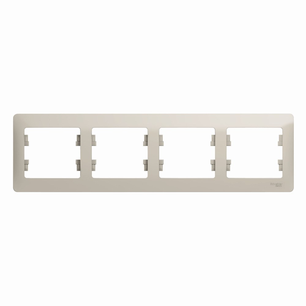 Рамка Systeme Electric (ранее Schneider Electric) серии Glossa (цвет молочный) четырёхместная. - Устанавливается в горизонтальном положении. - Выполнена из материала PС+ASA, стойкого к УФ-излучению и появлению царапин. - Позволяет гармонично вписать электроустановочное изделие в интерьер помещения.
