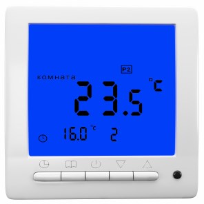 Терморегулятор Grandeks G09H - программируемый терморегулятор с жидкокристаллическим дисплеем и выносным датчиком температуры пола. Имеет встроенный датчик воздуха. Позволяет выбрать до 4 режимов обогрева на день, имеется возможность настройки в зависимости от дня недели. Позволяет существенно экономить потребляемую системой электроэнергию, поскольку включение обогрева происходит при остывании пола на 3°С от заданной температуры. Терморегулятор оснащен функцией «защита от детей». Благодаря большому размеру дисплея читаемость всех символов становится значительно лучше. Терморегулятор легко программируется, дисплей полностью на русском языке. Совместим с любыми системами электрического отопления внутри помещения. Напряжение питания 220 В Максимальный ток нагрузки 16 А, 3200 Вт Рабочая влажность 5% - 90% Датчик температуры выносной, тип NTC 10 кОм Длина соединительного кабеля датчика 3 м Поддерживаемая температура от +0°С до +40°С