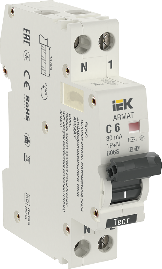IEK ARMAT АВДТ B06S 1P+NP C6 30мА тип AC (18мм) AR-B06S-1N-C06C030