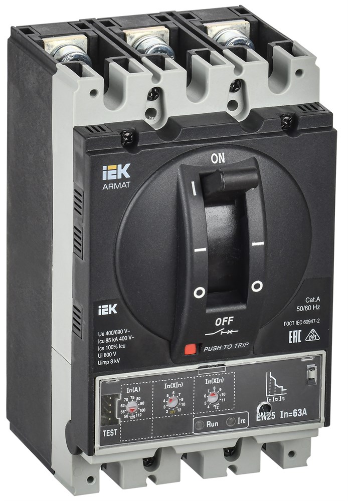 IEK ARMAT Автоматический выключатель в литом корпусе 3P A 85кА 63А эл. станд. AR-MCCB-3A-085-0063A-ELSC