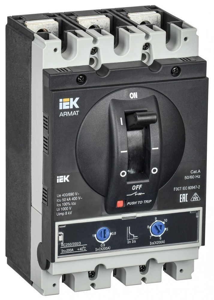IEK ARMAT Автоматический выключатель в литом корпусе 3P G 50кА 200А ТМ рег. AR-MCCB-3G-050-0200A-ATUC