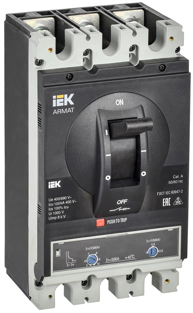 IEK ARMAT Автоматический выключатель в литом корпусе 3P I 100кА 500А ТМ рег. AR-MCCB-3I-100-0500A-ATUC